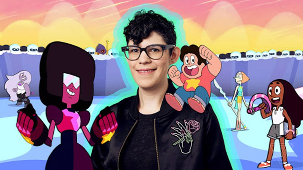 Ребекка Шугар — американская аниматорка, композиторка и режиссёрка, но прежде всего фанатам она известна как сценаристка «Времени приключений» и «Вселенной Стивена».