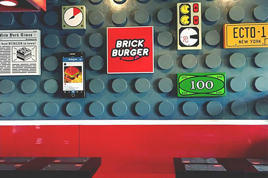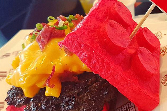 Здесь подают целых 12 бургеров, которые выглядят как кирпичики LEGO, и их названия соответствуют тематике заведения. «Дарт Бургер» (аллюзия на Дарта Вейдера в мире LEGO), «Президент Бизнес» (персонаж «Лего. Фильма»), «Начо вторник» (особая дата из того же «Лего. Фильма») и другие. Все они украшены цветными булочками и имеют разные вкусы.