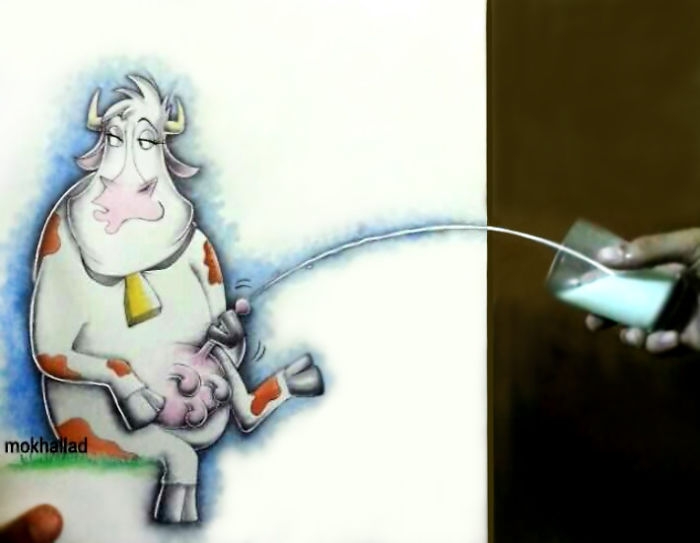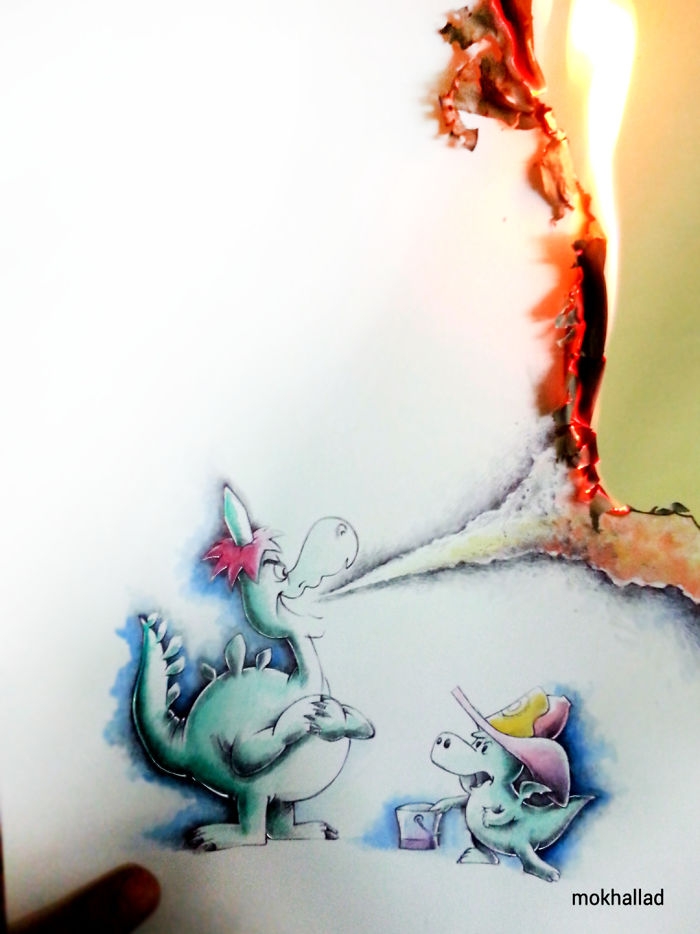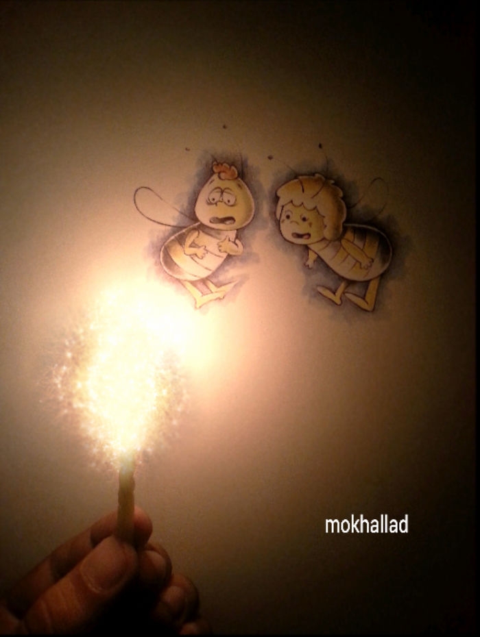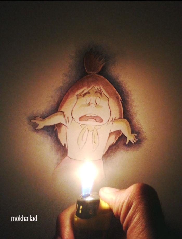 Мохаллад Хабиб из Ливана по профессии фармацевт, а по призванию — художник. Он признается, что любит совмещать рисунки с фотографией, производя таким образом впечатление на людей. Нередко он рисует героев популярных мультфильмов, например, целующую его Ариэль, или пчелку Майю, которая льет мед прямо в рот художника.