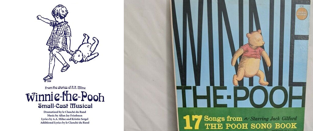 Не думали ли вы, что было «до»? До анимации, что не странно, существовали пластинки-спектакли. В 1929 году Алан Милн продал права на Винни-Пуха Стивену Слезингеру — продюсеру. Популярность разрослась лишь сильнее и значительно увеличилась после 1961 года, тогда Стивен перепродал права на вселенную студии Disney. И уже под присмотром большой мышки начали выпускаться соответствующие пластинки.