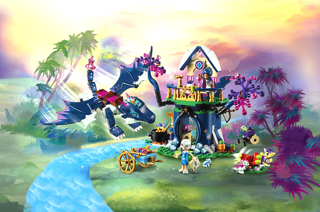 В этом наборе тоже есть большой дракон — Сапфир, без чьих особых способностей победить Короля Гоблинов вряд ли удастся. Также здесь вы найдете и саму хозяйку волшебной лечебницы, и маленького дракончика Лулу, которого хотят похитить злодеи, и в принципе все необходимое, чтобы придумать свою увлекательную историю в мире Эльфендейла.