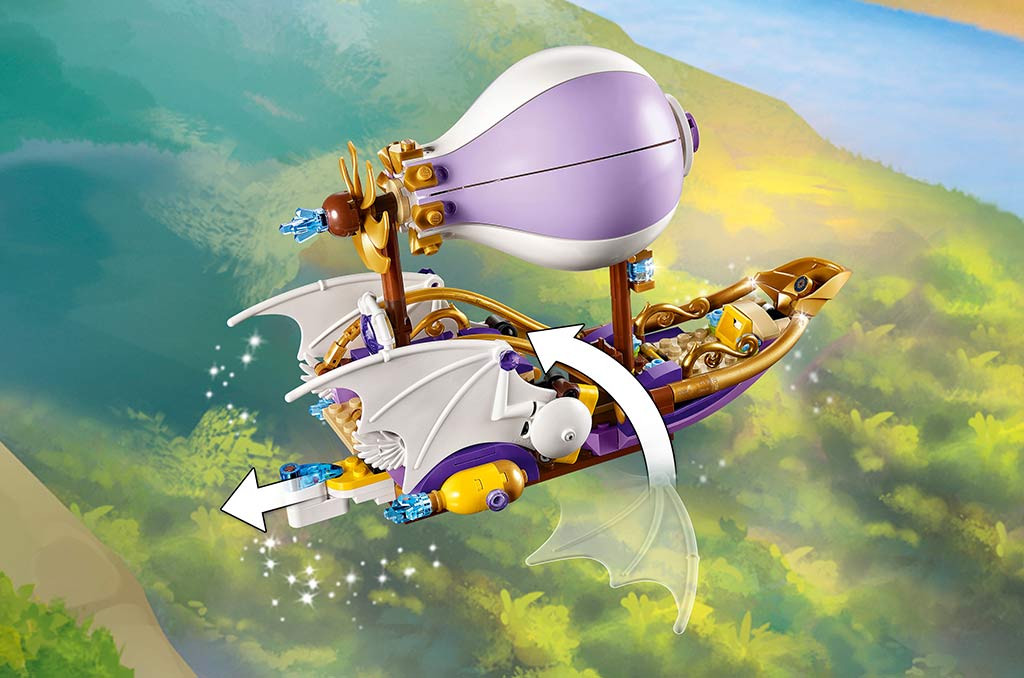 Встречайте главную героиню Эльфендейла — девушку по имени Эмили Джонс, и ее подругу, эльфийку ветра Эйру. Вместе они отправляются в захватывающее воздушное путешествие на красивейшем магическом дирижабле. Бело-фиолетовом, с крыльями и пропеллером — в лучших традициях воздушного транспорта LEGO!