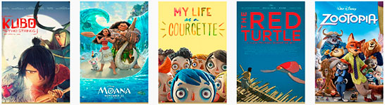 В список номинантов вошли: «Кубо. Легенда о самурае», «Моана», «Жизнь кабачка», «Красная черепаха» и «Зверополис».