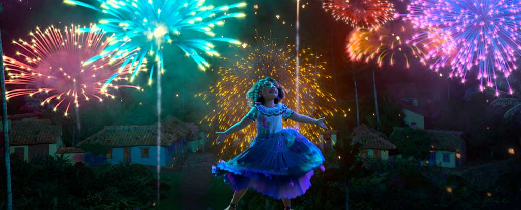 Что касается картинки, то тут производственные мощности корпорации вновь показывают высший класс. Это пиршество красок, цветов, узоров и красоты в каждом кадре. Место действия — Колумбия, куда съёмочная группа успела съездить в старые-добрые доковидные времена и поймать много вдохновения. Очень, очень красиво, жизнерадостно и ярко. Наблюдать за этим из тоскливого российского межсезонья особенно чудно.