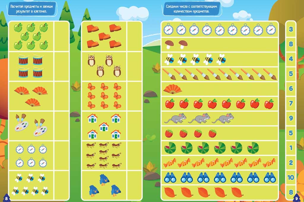 Также читатели погрузятся в новую сказку о самом лучшем месте в мире, проверят свои знания в счёте не только на листочках, и разукрасят осенний лес.