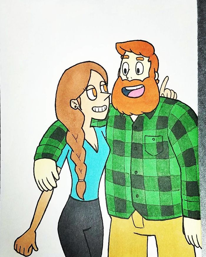 Если пытаетесь придумать оригинальный подарок ребенку/мужу/жене/друзьям, возможно поступок Келлена О’Хикки вас вдохновит. Он любит мультики, хорошо рисует, поэтому решил изобразить себя с девушкой в образах популярных мультгероев. Надо ли говорить, что его половинка была счастлива.