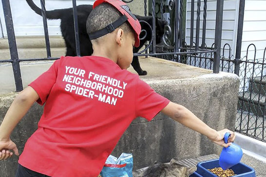 С тех пор тетя дала племяннику прозвище «Кэтмен», и он стал кошачьим супергероем. Теперь это его ежедневные обязанности — переодеться в костюм любимого героя и идти к кошкам. Шон кормит их, гладит, и даже самые злые буки не выдерживают и идут тереться ему об ноги. «Это настоящее волшебство, суперсила», — заметила тетя Шона. Сам мальчик говорит, что он делает это, потому что ему нравится чувствовать себя супергероем для кошек.