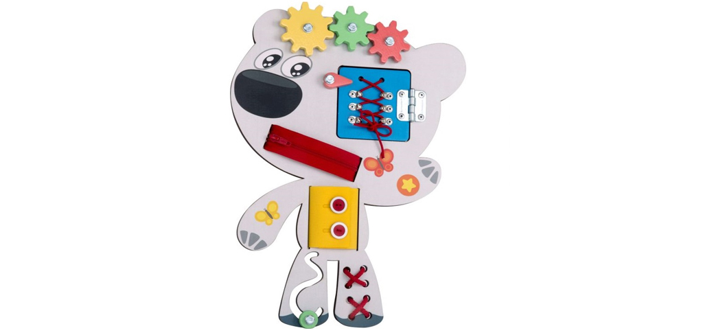 Хорошо, а если активничать хочется не дома (или не можется на улице), но все остальные игрушки уже сто раз исследованы и знакомы до последней вмятинки? На помощь придёт бизирод. Он поможет разобраться в работе многих вещей. Конечно, концентрировать своё внимание малышу лучше на одной задаче за раз. К примеру, поучиться завязывать шнурки (а в современном мире это полезно даже взрослым). После шнурков можно переключиться на пуговицы, ведь с ними не все маленькие пальчики могут справиться без проблем. На бизиборде есть молния, шестерёнки, дверца с щеколдой и даже небольшой «лабиринт». С такой познавательной игрушкой можно надолго «зависнуть» и отточить ловкость мелкой моторики. Любителям рыжиков на заметку — Кеша тоже поможет ребёнку разобраться с простых механизмах этой жизни.