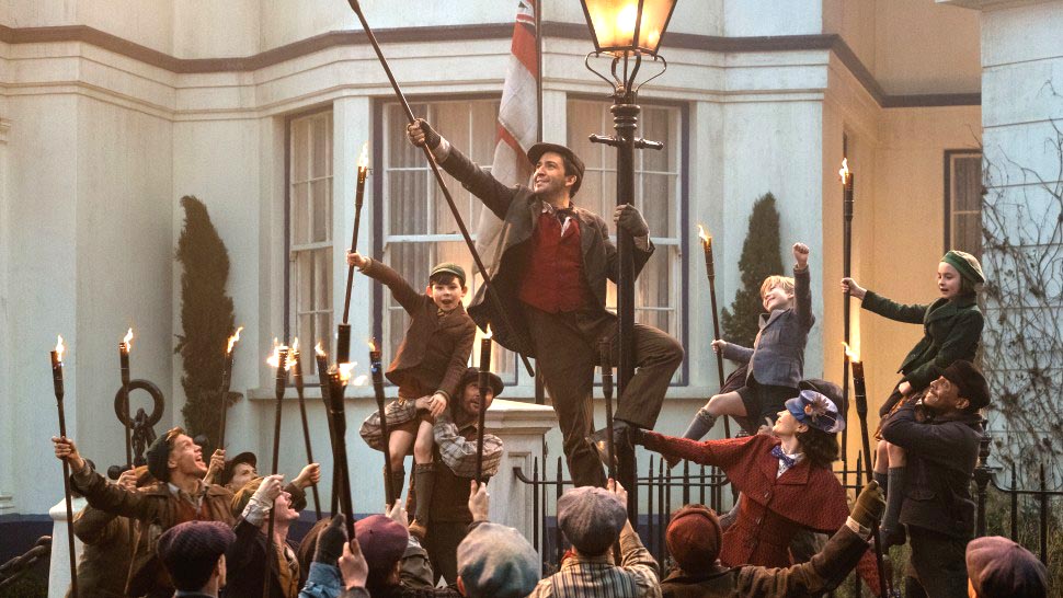 На самом деле это не фильм. Мюзикл. Именно так «Мэри Поппинс возвращается» нужно воспринимать, и как мюзикл он прекрасен целиком и полностью. Сцены с песнями перетекают в сцены с песнями и танцами, затем снова идут песни, чуть-чуть чопорных диалогов и опять песни.