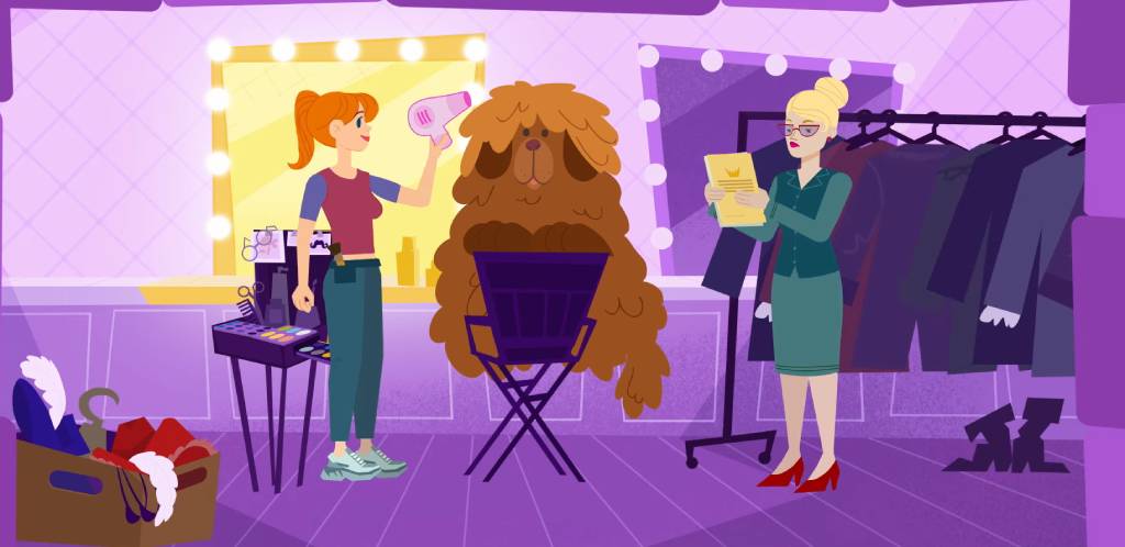 Первая остановка путешествия с Куда-угодно-дверью встречает героев домиком, построенным из картона. Нет, это не отсылка к «Трём поросятам», а самая настоящая съёмочная площадка. Здесь работают разные звери-звёзды, со своими помощниками и даже документами, на которые ставят печати. Да-да, отпечатком лапы. Получится ли у Коровки сходу вжиться в роль?