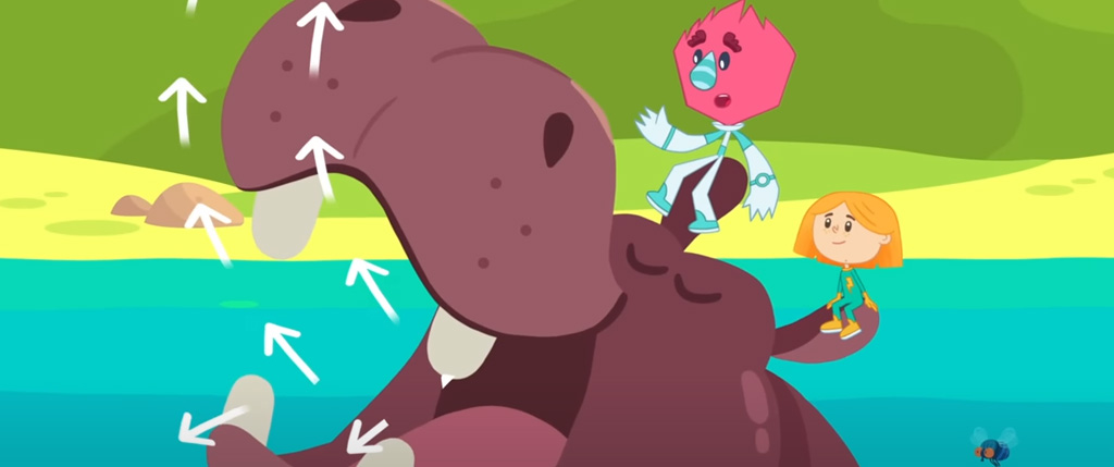 Маска сменяется маской, пока Катя не превращается в бегемота. Смотря на своё чудаковатое отражение, девочка задаётся вопросом: зачем бегемоту такая большая голова? Лучший ответ найдётся в компании млекопитающего, которое отлично умеет плавать, при этом постоянно держа голову над водой. Всё не просто так!