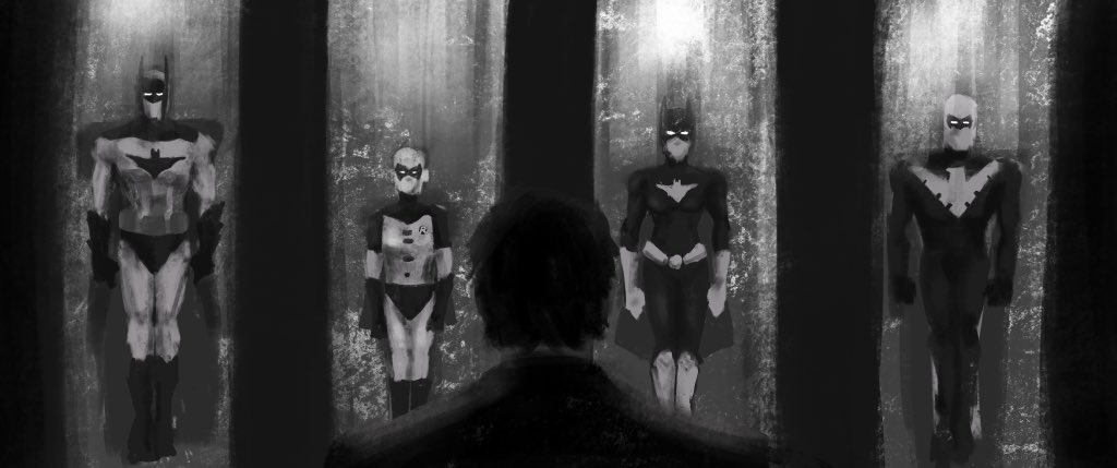 Если вы ещё не в курсе, то Бен Аффлек официально покинул пост Бэтмена. Чтобы от данного факта вам не стало грустно, смеем максимально быстро поднять ваше настроение: Warner Bros. приступили к разработке анимационного фильма «Бэтмен будущего». В сеть утёк первый концепт-арт мультфильма, посвящённого тёмному защитнику из вселенной DC. На рисунке можно чётко разглядеть четырёх персонажей: Бэтмена, девушку-Робина, Бэтгёрл и Найтвинга.