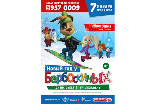 Любимые герои мультсериала «Барбоскины» приглашают вас и ваших детей на свое новогоднее шоу. А Tlum.Ru дарит вам промо-код на скидку 20% на покупку билетов!
