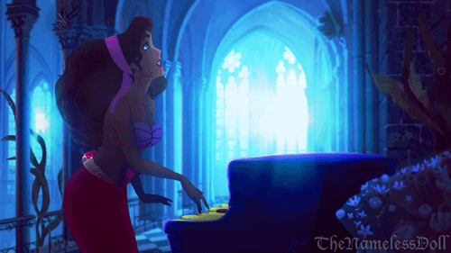 Эсмеральда поёт и играет в одиночестве