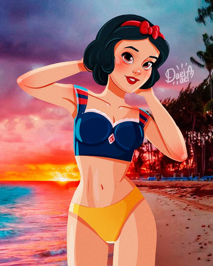 [данные удалены] - иллюстратор (и иногда модель) из Киева. Как и многие девочки, она обожает принцесс мультфильмов студии «Дисней» и потому много времени посвящает иллюстрациям с ними. Вот, например, она нарисовала их в купальниках, которые очень в стиле своей хозяйки. «К лету готовы!» — как бы говорят они всем своим видом.
