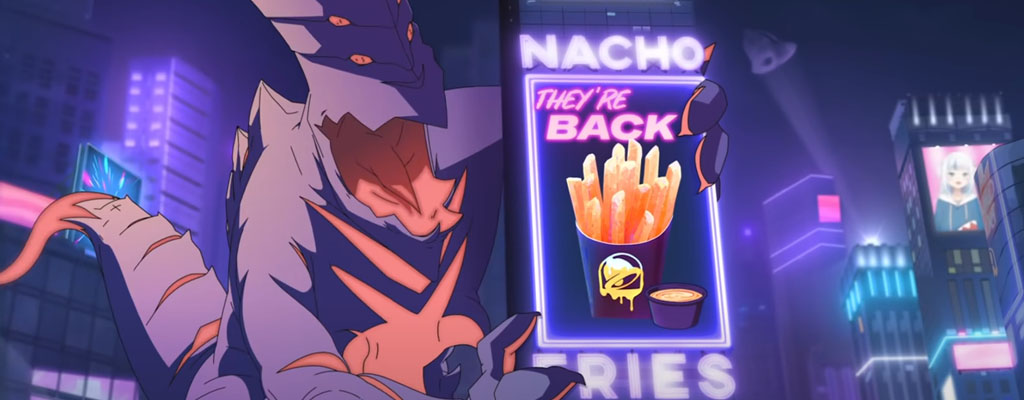 Реклама картошки фри. Происходящее можно воспринимать как идеальную меха-пародию, а можно удивиться гениальности подхода рекламщиков. Nacho Fries — новинка меню 2018 года, особенность блюда в том, что оно то появляется, то исчезает, можно не успеть угоститься вкусняшкой. На этом-то и построен сюжет, где есть монстры и роботы, смутно знакомые по вселенным «Тихоокеанский рубеж», «Трансформеры» или «Евангелион».
