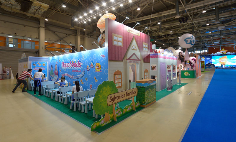 А буквально за углом домика Sylvanian Families находится стенд Aquabeads, где дети собирают игрушки из бусин.