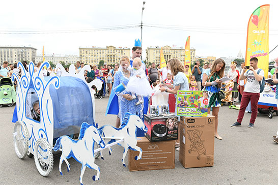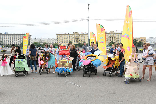 Более 100 человек приняли участие в конкурсе по превращению своей обычной коляски во что-то волшебное. Идеи были самые разные — воздушный шар, карета, дракон, колесница, вылупившееся яйцо и т. д. Для тех, кто пришел на Парад с обычными колясками, работал АРТ-Гараж. Там эксперты дизайна помогали родителям и с идеей, и с ее воплощением.