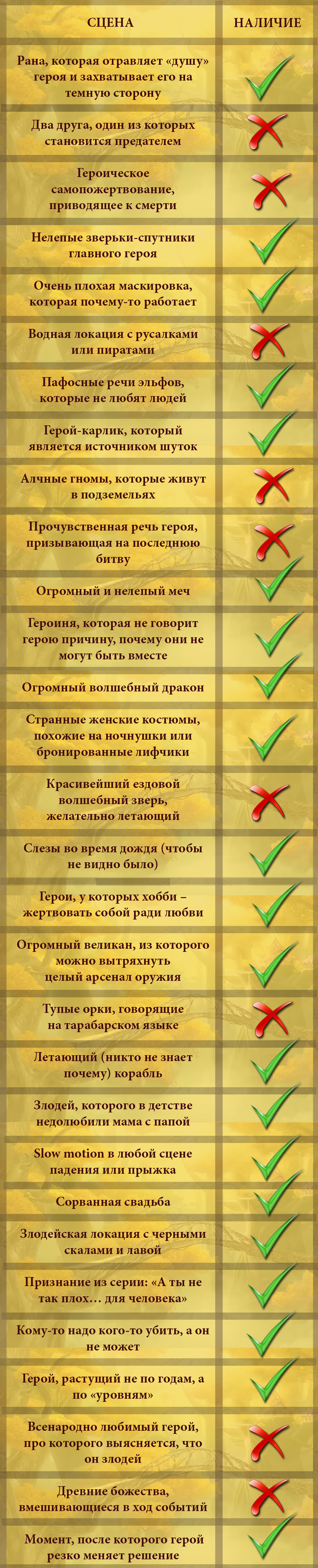А чтобы не быть голословными, мы вспомнили самые частые штампы в мире фэнтези и отметили те, которые заметили в «Троне эльфов». Совпадение 70%.