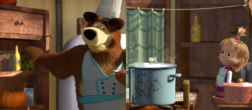 Устали удивляться рекламе в «Фиксиках»? Давайте переключимся на мультсериал «Маша и Медведь».