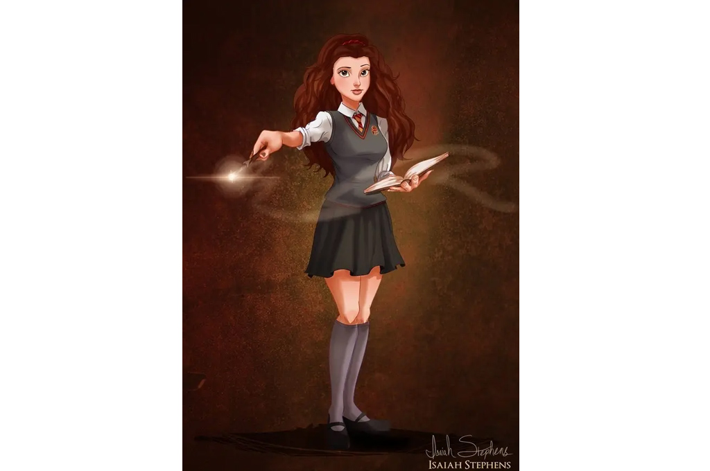 Белль («Красавица и Чудовище») переоделась в Гермиону из «Гарри Поттера», которая точно так же любит книги