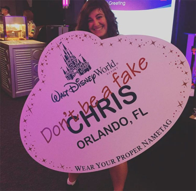 Когда будете в Диснейленде во Флориде, понаблюдайте за бейджиками персонала. Возможно, вам удастся заметить нескольких людей, которых зовут «Крис из Орландо». Но на самом деле у этих сотрудников другие имена. Просто они забыли дома свои бейджики и пришлось брать на работе дежурный — на таком бейдже всегда написано одно и то же. Хотя, кто знает, может быть, и есть среди тысяч работников волшебной страны Крис из Орландо, которому не нужно все время брать с собой бейдж из дома.