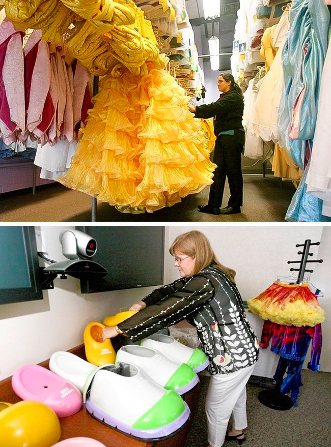 Отдел костюмов в Диснейленде — это что-то невероятное. Здесь насчитывается более миллиона нарядов! Неудивительно, ведь только у Микки Мауса предусмотрено множество костюмов для каждого отдельного случая. Большое число работников трудится над их созданием, починкой и уходом.
