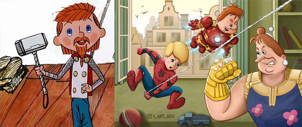 Вряд ли студия Marvel воспользуется такой оригинальной идеей, но мы всегда можем полюбоваться кроссоверами супергероики с любимыми мультфильмами благодаря художникам.