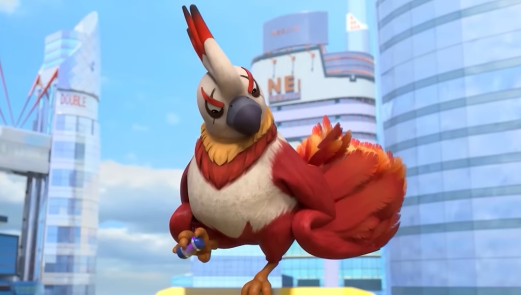 Склянка с пи-примесью, перелетая из рук в руки, оказывается в лапах гигантской птицы. Джи-Джи Бонд прыгает на неё, цепляясь за лапы, и птица взлетает вместе с ним. Начинается погоня, чтобы отобрать токсичные улики против Левсона — Стар движется за пернатой воровкой на скейтборде, а Доктор Миху вместе с Джо и Джеком — на машине.