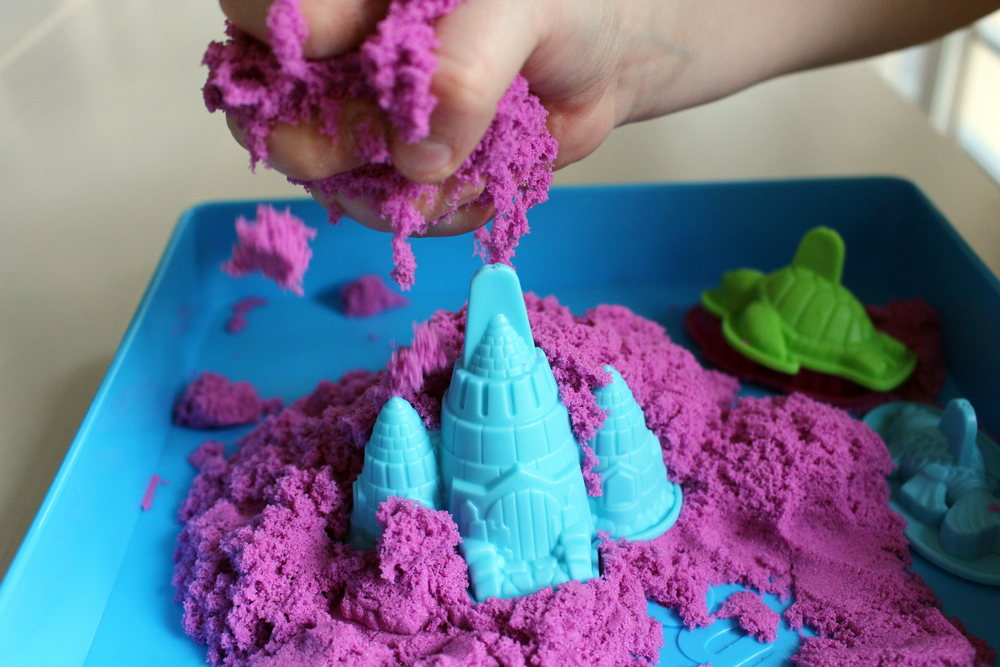 Да кстати, вспомнила интересную штуку, которая подойдет детям от 0 до 99 лет — Кинетический песок. Не знаю, насколько можно считать работу с ним научными изысканиями, но сыплется он классно и не сохнет — умиротворяет. А мирная мама — залог семейного счастья. Производители уверяют, что его даже есть можно, ибо не токсичен и бактерии в нём не живут.