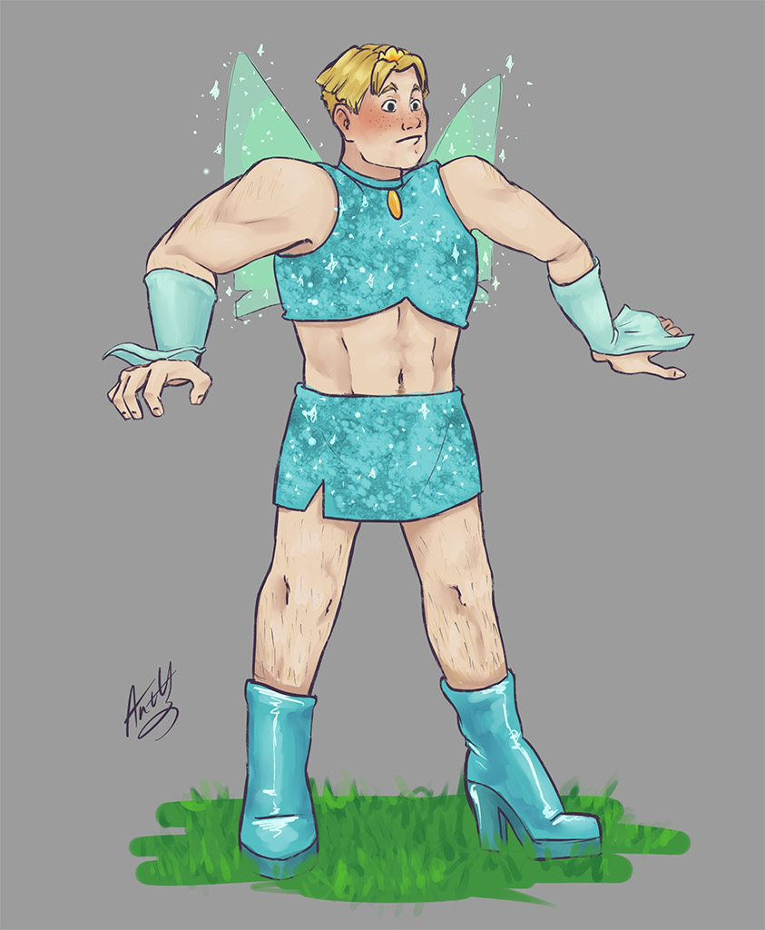 На богатырш посмотрели, пора переходить к феям. Художница AntU нарисовала богатырский кроссовер с вселенной феечек Винкс. Казалось бы, всё понятно — превращаться будут девушки. А вот и нет, феечками стали богатыри!