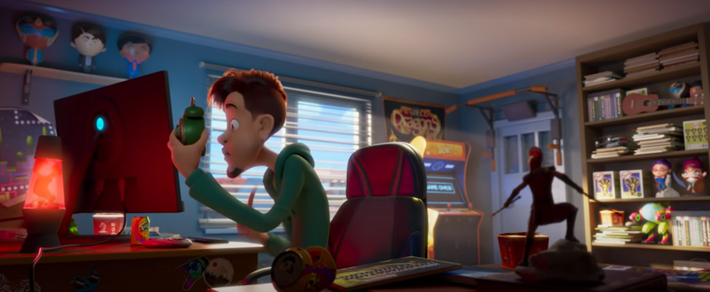 В мультфильме нашлось место даже гикам — так, например, в тизере показали сцену с мужчиной, который заснул за компьютером. А в его комнате можно найти множество отсылок на разные игры и не только — так, например, мы заметили плюшевую игрушку Симметры из Overwatch, статуэтку из игры Assassin’s Creed Odyssey, коробки от фигурок Funko Pop и плакат Dungeons and Dragons.