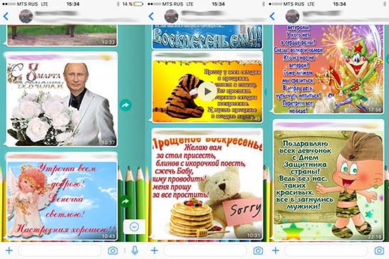 «Я не понимаю убогость людей, которые закидывают всякие открытки. Поверьте, никого не интересуют ваши умилительные открытки. Раздражают беспредельно, засоряют и забивают память телефона».