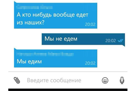 «Сначала я думала — группа в ватсап это так удобно. Но там начались ругачки из-за денег, взаимные оскорбления, попытки самоутвердиться за чужой счет и тп… в итоге меня же оттуда и выгнали, за нежелание в очередной раз „скидываться“ на какую-то ненужную чушь… ну и ладно, мне же спокойнее))))»