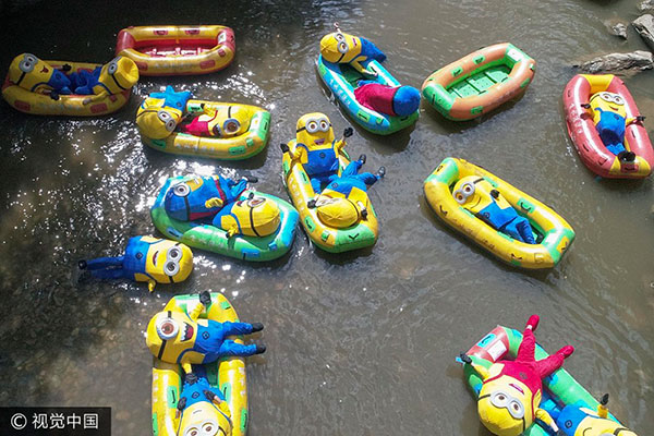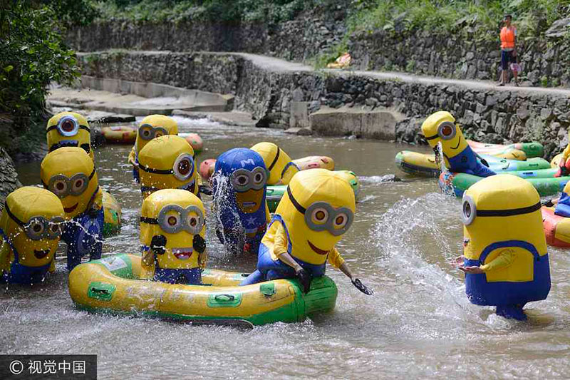В КНР китайские туристы сплавились по горной реке в костюмах миньонов. Как сообщает местное издание China Daily, таким образом люди хотели спастить от сильной жары, которая сейчас установилась в регионе.