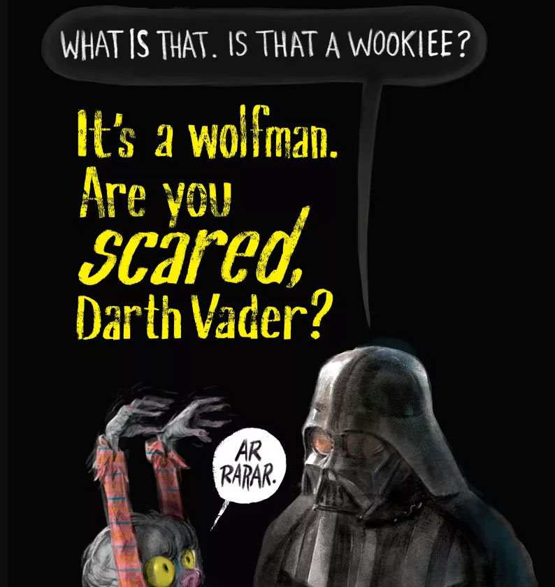 Компания Lucasfilm выпустила в продажу замечательную детскую книгу с названием «Страшно ли тебе, Дарт Вейдер?» («Are You Scared, Darth Vader?»). Автор и текста, и иллюстраций — Адам Рекс, детский писатель, чье произведение легло в основу мультфильма «Дом».