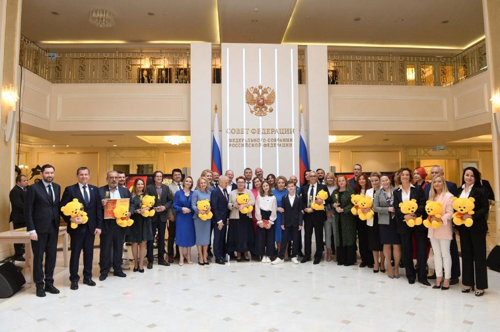 Руководители крупнейших российских компаний и производств по выпуску игрушек, учебного оборудования, товаров для творчества, владельцы брендов и сервисов для детей получили из рук главы Совета Федерации именную статуэтку.