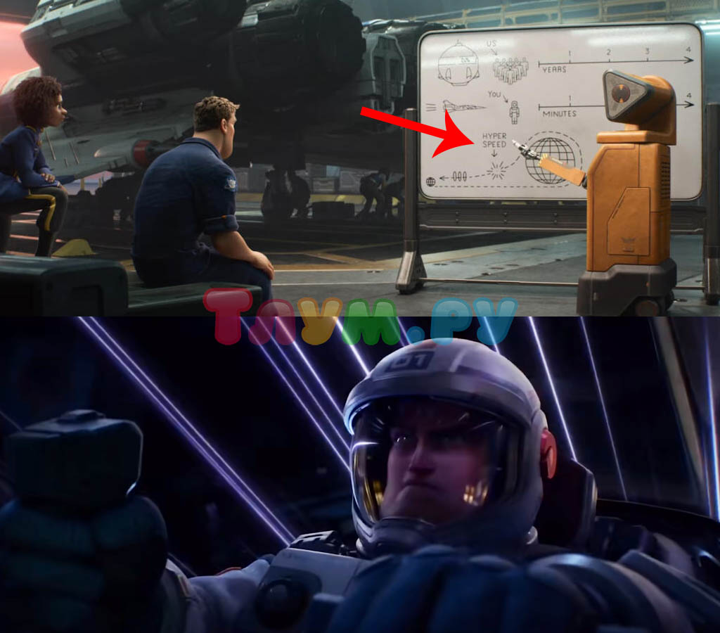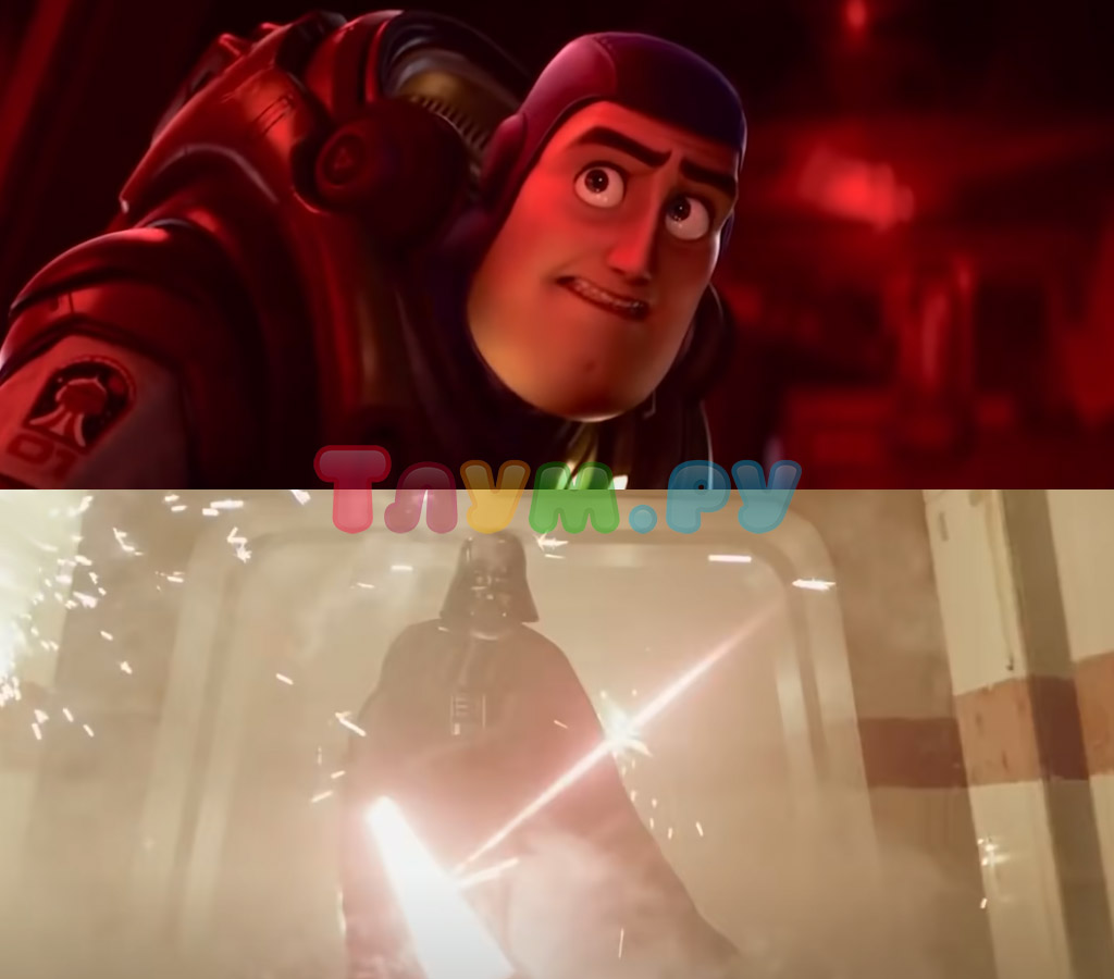 В одном из интервью уже сказали, что «Базз Лайтер» — большой фильм, фанатом которого станет Энди после первого взгляда. И образ отважного астронавта не более, чем сценическая роль. И всё-таки отсылок в мультфильме, то есть фильме, то есть… так, давайте просто скажем, что это очевидные «Звёздные войны», и подобное будет ещё.