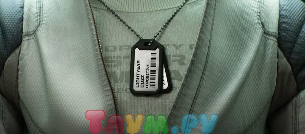 На жетоне Базза прописаны: имя, фамилия и группа крови. 0 positive — первая положительная, самая распространённая, Базз универсальный донор.