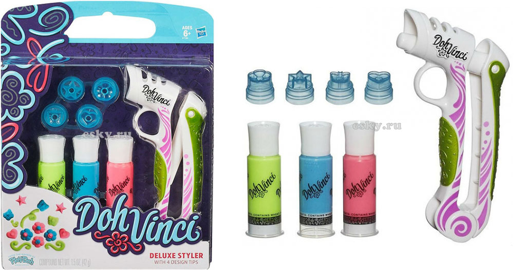 Процесс работы с обоими комплектами DoVinci очень простой: «пистолет» — стайлер заряжается колбами с мягким пластилином, и как кондитерский мешок, выдавливает массу для лепки тонкой струей.