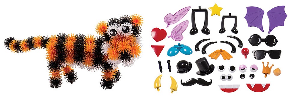 Помимо разноцветных шариков, в наборы кладут разные детали вроде глаз, ног, ушей и даже очков — для создания завершенных образов. Еще один удобный момент: в продаже есть большой (и недешевый) набор с несколькими сотнями деталей конструктора, однако представлены и маленькие комплекты, стоящие совсем недорого. Если сомневаетесь и хотите попробовать уже «на ребенке» — всегда есть возможность приобрести небольшой набор и посмотреть на реакцию.