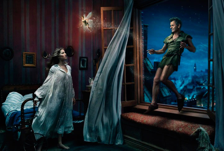 Жизель Бундхен в роли Венди, Михаил Барышников в роли Питера Пэна, Тина Фэй в роли Динь-Динь, «Питер Пэн»