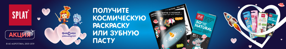 - За 2 любых продукта детской серии SPLAT получите гарантированный приз — Космическая раскраска «Невероятные факты о космосе»!